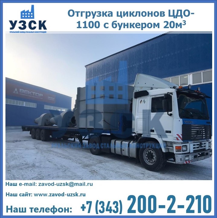 Циклоны ЦДО-1100 с бункером на 20 кубов были отгружены в декабре 2018 года в г. Новосибирск Вологда.