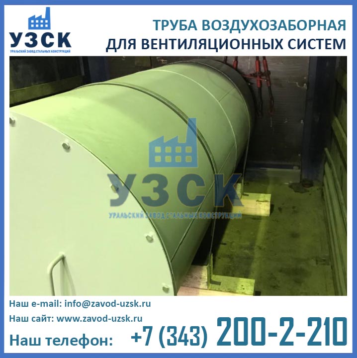 Наш завод ООО «Уральский завод стальных конструкций» предлагает купить трубы воздухозаборные в Вологде на выгодных условиях. Мы изготовим для вас воздуховоды любого диаметра, конструктивного и материального исполнения в кратчайшие сроки. Уточнить цены на воздухозаборные трубы можно по телефону отедла продаж УЗСК 8 (800) 20-02-337