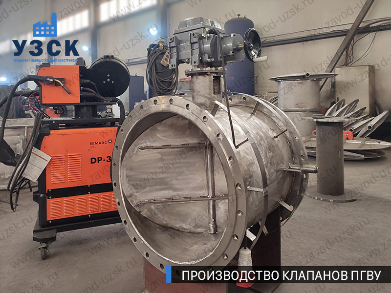 Производство клапанов ПГВУ осуществлено из стали 12Х18Н10Т и 20Х23Н18 по чертежам заказчика. Круглые клапаны Ду 500 — Ду 1700 мм изготовлены в полном соответствии с конструкторской документации заказчика. Сварные соединения выполнены аттестованными сварщиками и соответствуют ГОСТ 14771-76 и ГОСТ 16037-80.