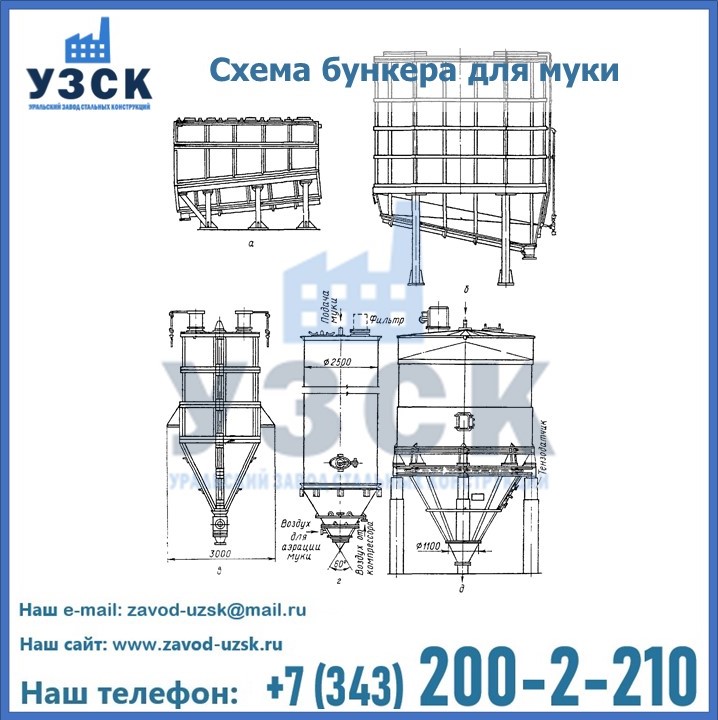 Завод «УЗСК» в Вологде проектирует, производит и поставляет целевое оборудование, в том числе, бункеры для хранения муки и прочих сыпучих материалов.