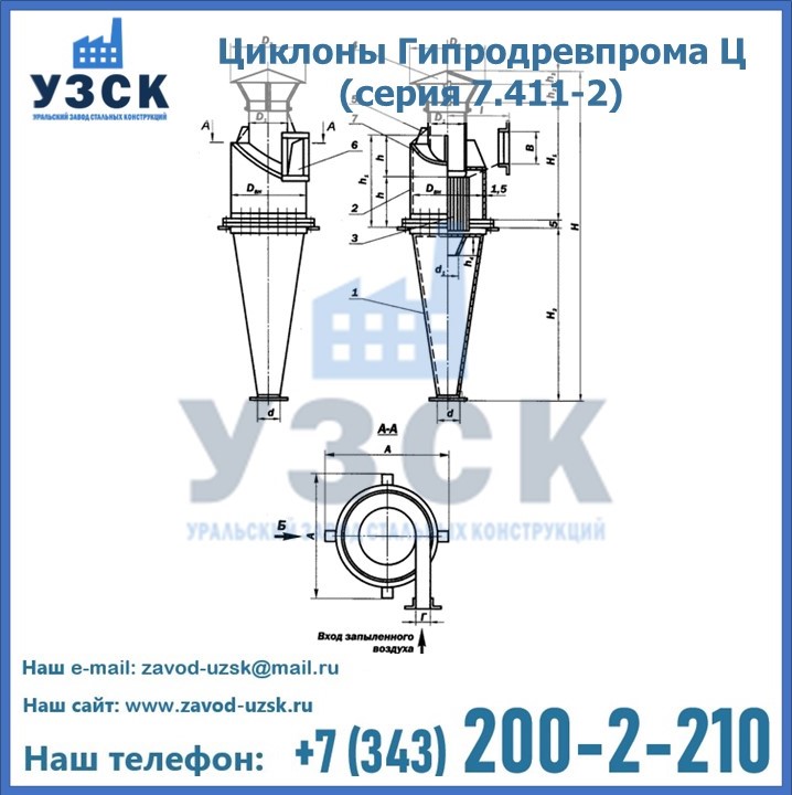 Циклоны Гипродревпрома Ц (серия 7.411-2) высокого качества можно купить в компании «УЗСК» в Вологде. Наши специалисты предоставят всю необходимую информацию информацию и помогут с выбором модели циклона. Подробные технические характеристики, конструкцию, параметры, ассортимент и стоимость продукции можно также найти на сайте УЗСК.