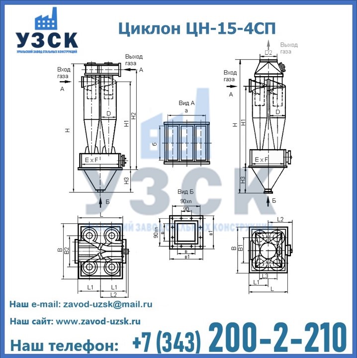 Завод «УЗСК» в Вологде предлагает большой выбор циклонов ЦН-15-500×4СП и прочих устройств, полностью укомплектованных и готовых к эксплуатации. Мы гарантируем соответствие оборудования всем требованиям ГОСТ и ТУ, износостойкость и высокую производительность предлагаемого оборудования. Уральский Завод Стальных Конструкций изготавливает и продает надежное, эффективное и производительное оборудование, имеющее длительную гарантию и большой эксплуатационный ресурс. Если требуется изготовить циклон нестандартных размеров, то такой вариант выполнения заказа тоже предусмотрен, так как предприятие имеет собственные производственные площади и надежных поставщиков. На все поставляемое или производимое оборудование имеются чертежи и прочая техническая документация. Заказать и купить циклоны или прочее оборудование высокого качества и по доступной цене можно через наш сайт или по указанному в разделе «Контакты» телефону.