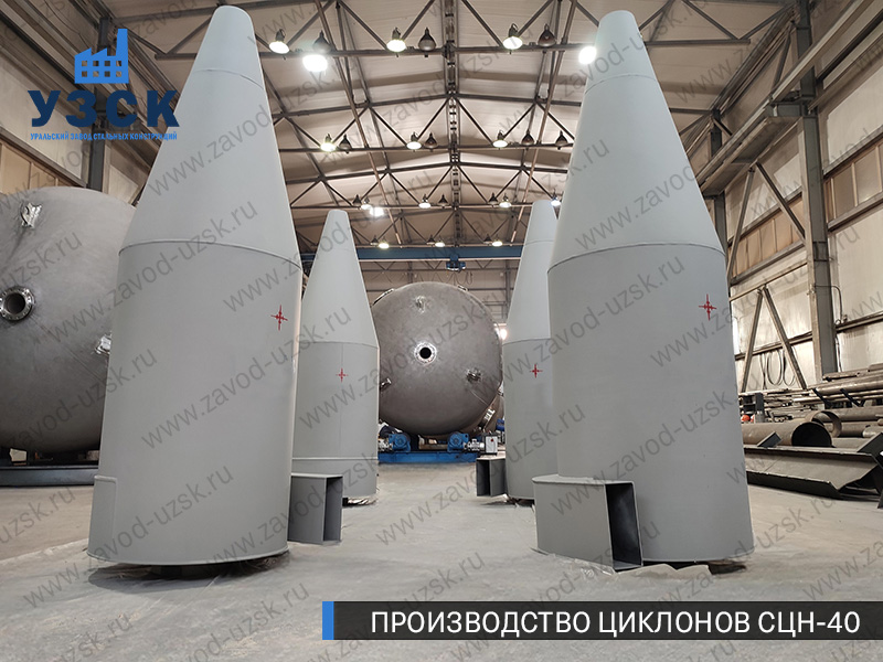 Циклоны СЦН-40 являются очистительной системой, обладающей более качественными показателями выноса вредных примесей в сравнении со всеми другими моделями циклонов, при этом энергозатраты у них всех одинаковы. Уральский завод стальных конструкций в Вологде занимается продажей готовых циклонов СЦН-40, а также проектированием, сервисным обслуживанием пылеуловителей и осуществляет монтажные работы циклонов. Монтаж аппаратов ЦСП-40 осуществляется на стороне, с которой происходит всасывание воздуха. Показатели массы устройства напрямую зависят от его производительности.