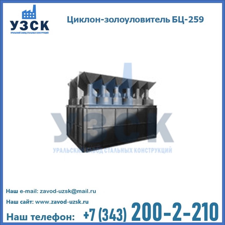 Если вы планируете купить то или иное оборудование, например, циклоны-золоуловители БЦ-259, то рекомендуем заказать данный товар на сайте УЗСК. Мы производим и реализуем продукцию высокого качества по приемлемой цене. Эксперты Уральского Завода Стальных Конструкций в Вологде проконсультируют вас по всем вопросам, помогут сделать выбор и оформить заказ без лишних временных затрат. Мы гарантируем соответствие нашей продукции всем требованиям ГОСТ и ТУ, а также износостойкость и высокую производительность предлагаемого оборудования. Если требуется изготовить циклон нестандартных размеров, то такой вариант выполнения заказа тоже предусмотрен, так как предприятие имеет собственные производственные площади и надежных поставщиков. На все поставляемое или производимое оборудование имеются чертежи и прочая техническая документация. Заказать и купить циклоны или прочее оборудование высокого качества и по доступной цене можно через наш сайт или по указанному в разделе «Контакты» телефону.