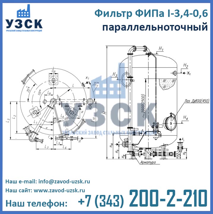 Производитель фильтров ФИПа параллельно-точных завод УЗСК предлагает два варианта комплектации ФИПаI 3,4-0,6 в Вологде: