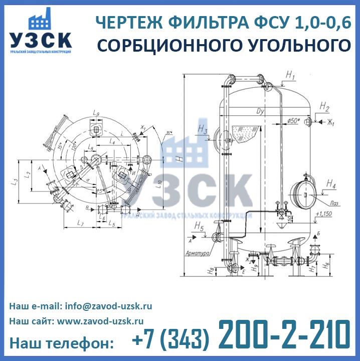 Наш завод (Уральский завод стальных конструкций) является производителем угольных фильтров, сам осуществляет изготовление и реализацию выпускаемой продукции. Приобретая фильтры ФСУ-1.0-0.6 в Вологде от производителя, Вы приобретаете оборудование без наценок всевозможных посредников, а также значительно экономите свое время. Фильтры ФСУ1.0-0.6 завода УЗСК – это гарантия качества, кратчайшие сроки изготовления и цена, которая Вам понравится.