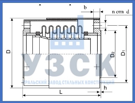 Компенсатор ОФМ представляет конструкцию их сифона и дух парубков с неподвижными фланцами. Внутри поверхность гофры защищена от истирания защитной гильзой.
