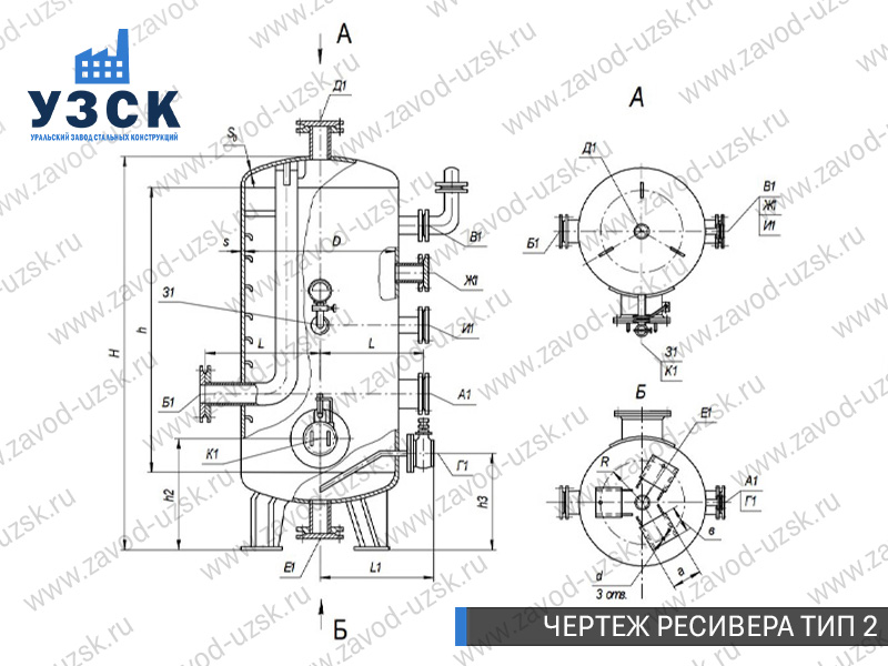 Ресивер высокого давления — это специализированное оборудование, разработанное для накопления и хранения воздуха или газа под давлением, а также для подачи рабочей среды на технологические линии предприятий. Завод «УЗСК» осуществляет изготовление газовых и воздушных ресиверов (воздухосборников) любой сложности. Мы предлагаем самые выгодные цены на ресиверы из углеродистой стали, ресиверы из легированной стали и ресиверы из нержавеющей стали в Вологде.