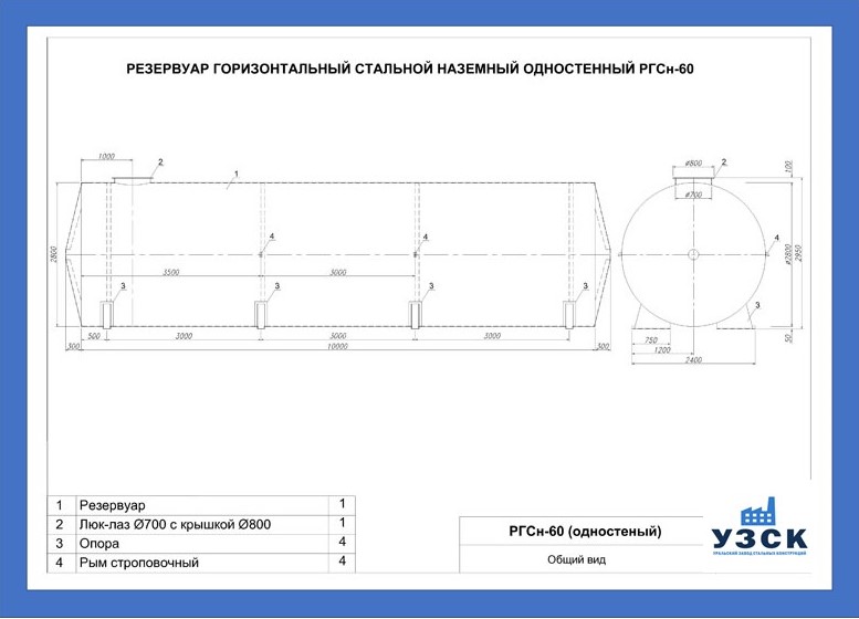 РГСн-60: горизонтальный резервуар одностенный наземного расположения;
