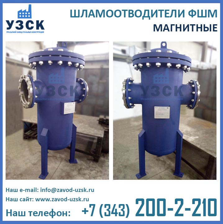 Являясь непосредственным изготовителем фильтров магнитных ФШМ, Уральский завод стальных конструкций предлагает самые низкие цены на шламоотделители ФШМ Ду250 в Вологде. Производство магнитных шламоотводителей осуществляется в самые короткие сроки специалистами сварочного производства НАКС по аттестованной технологии сварки при помощи сварочного оборудования, аттестованного Национальным агентством контроля сварки.
